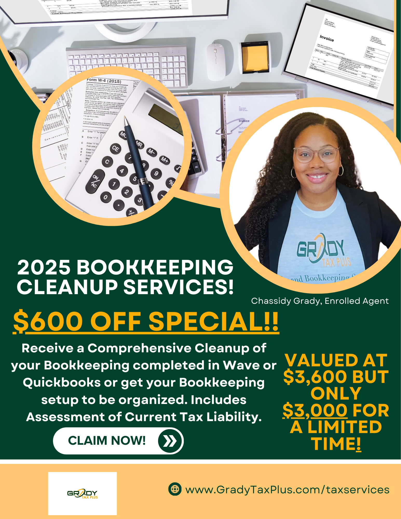 This service is for you if you or someone has completed your bookkeeping and you have questions about the accuracy of the Bookkeeping for Tax Prep filing. We will review your Wave or Quickbooks for completion and accuracy such as reviewing categories and reconcile. We will discuss tax saving strategies in addition to assessing your Tax Liability for 2025. We will have a 1 hour appt to discuss findings, corrections needed, and next steps.
