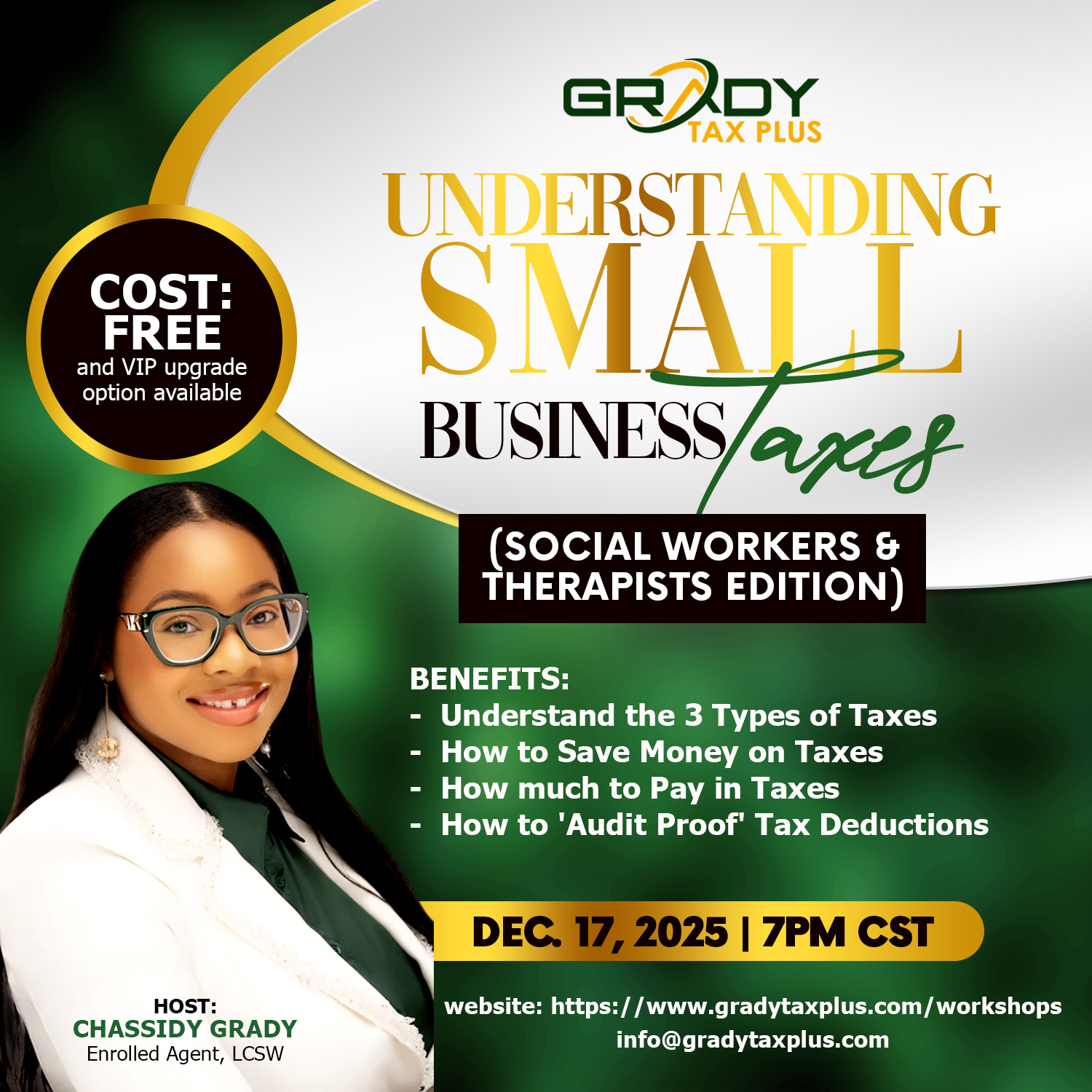 Get ready to end 2026 off the right way in preparation for 2027 so that you are not surprised by the things you didn't know or overlooked. You will also be able to get your questions answered during the Q&A session. Please come with pen and paper and be ready to take good notes!