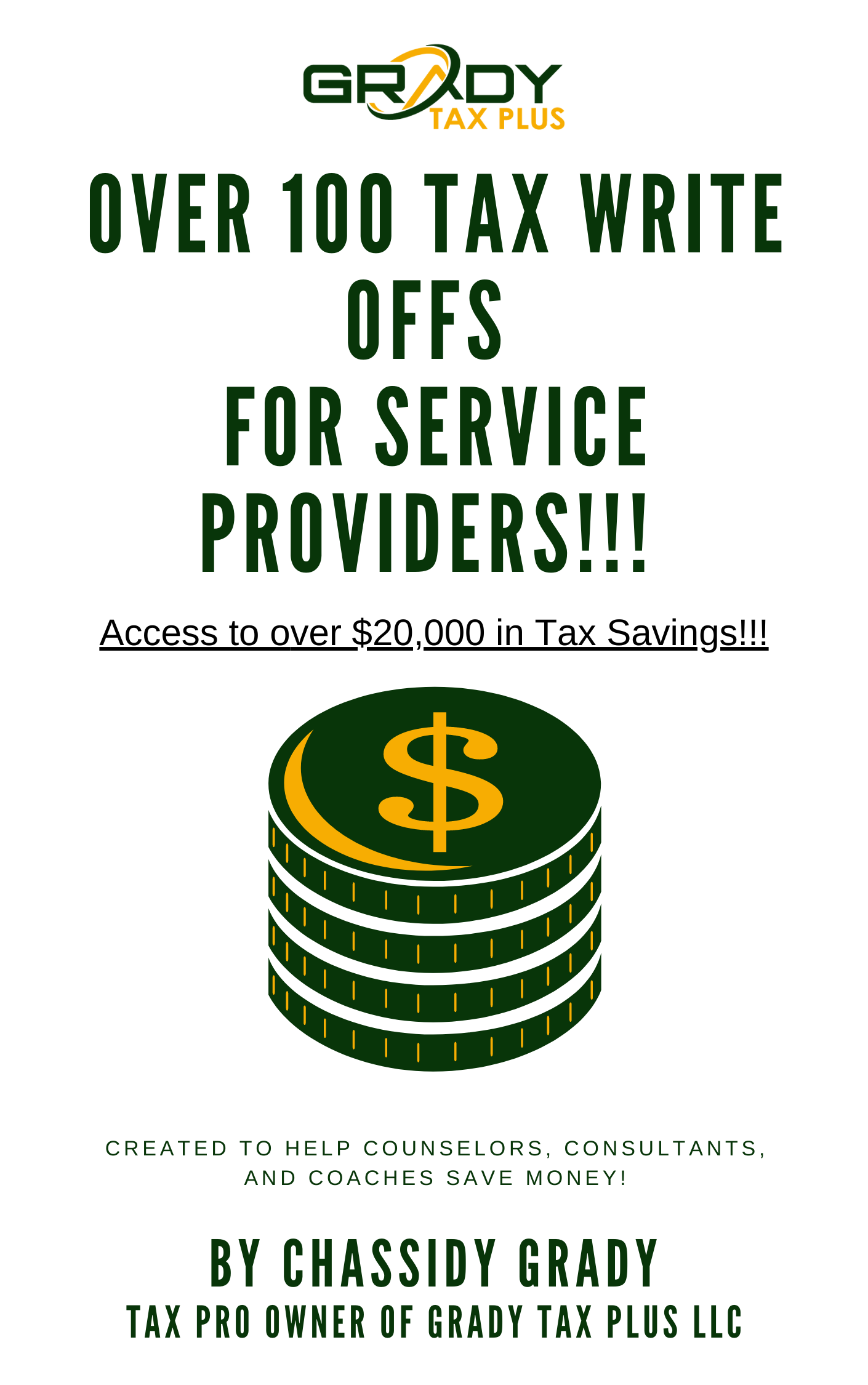 This guide is perfect for you if you don't know what you can take as a tax write off or if you think you have minimal expenses in your business. This guide has the expenses listed by category so that you know which tax deduction category the expense falls under when its time to do your taxes. If you are a Counselor, Consultant, Coach, or similar professional, you need to know these tax savings ASAP!