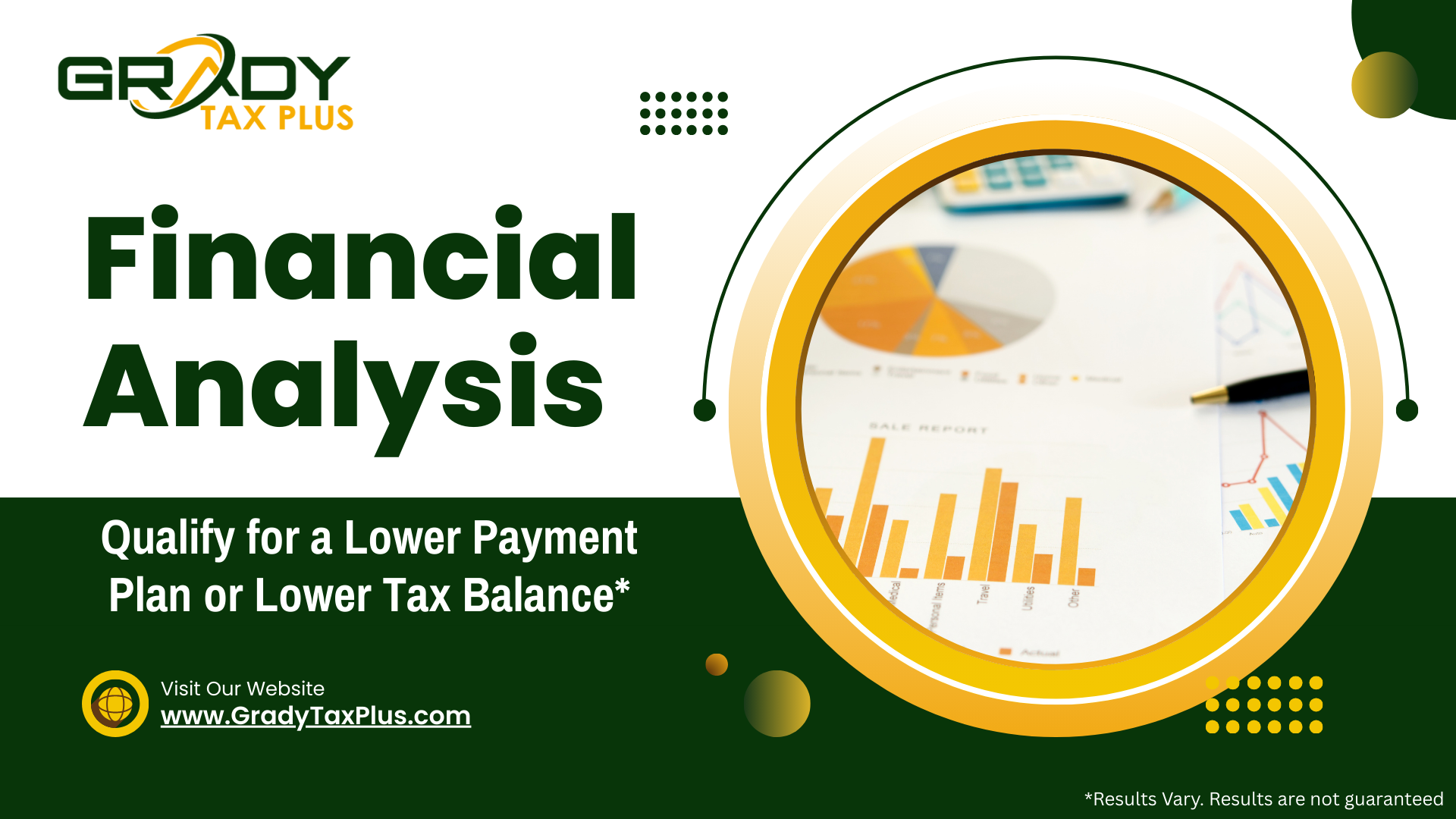 The Financial Analysis is where we analyze your financial situation to determine the best option to either lowering your balance with the IRS or obtaining a lower payment plan with the IRS. We look at both your personal and business finances (depending on your business structure) during the financial analysis to calculate your potential balance and/or payment plan amount. If you owe over $250,000 to the IRS, you are required to complete the Financial Analysis per IRS Guidelines.