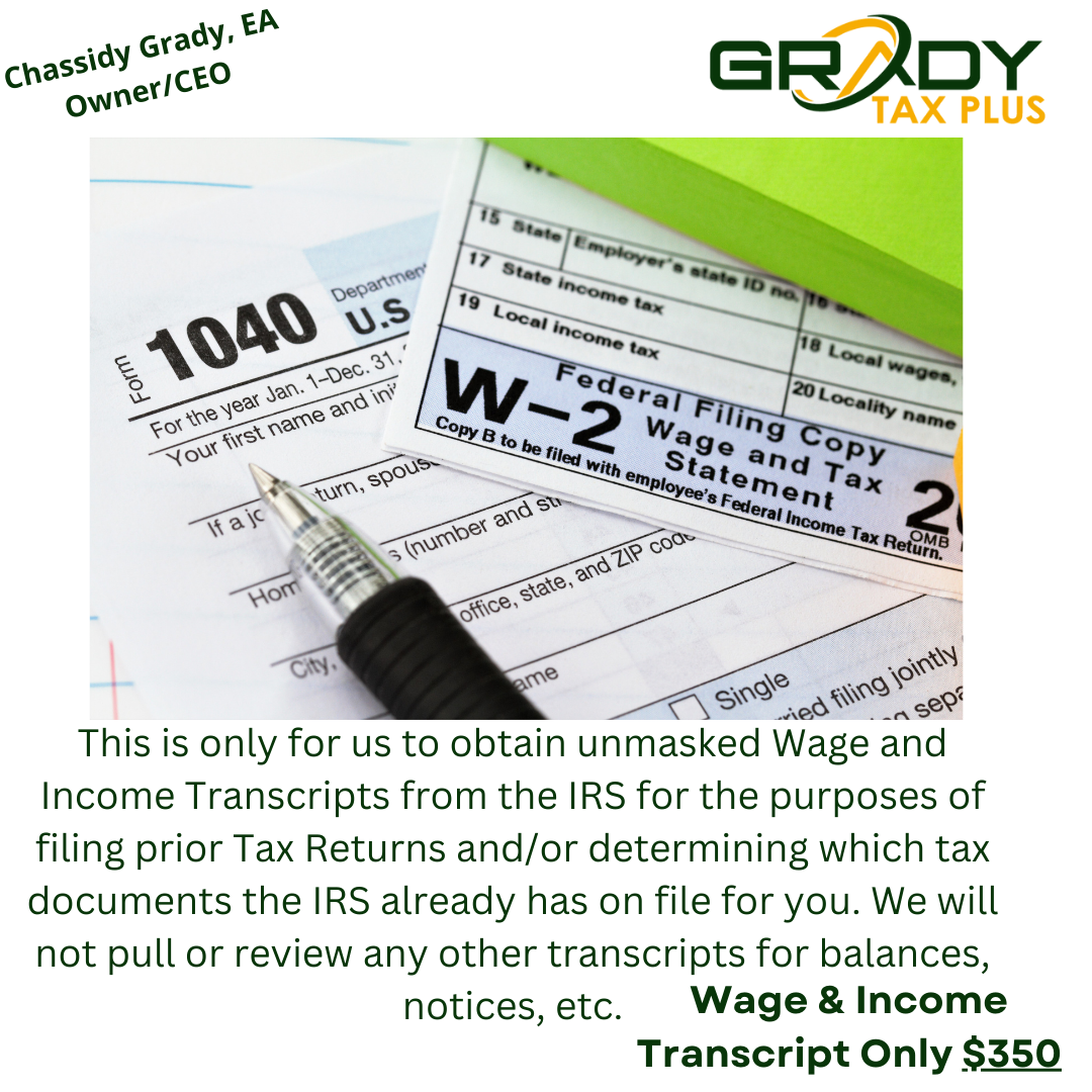 This is for you if you don't know where to start or you have multiple issues such as owing the IRS, need to file back taxes, have IRS letter(s), etc. Our Investigation is designed to review and assess all information available from you and the IRS and come up with a course of action on how to get on the right side of the IRS.