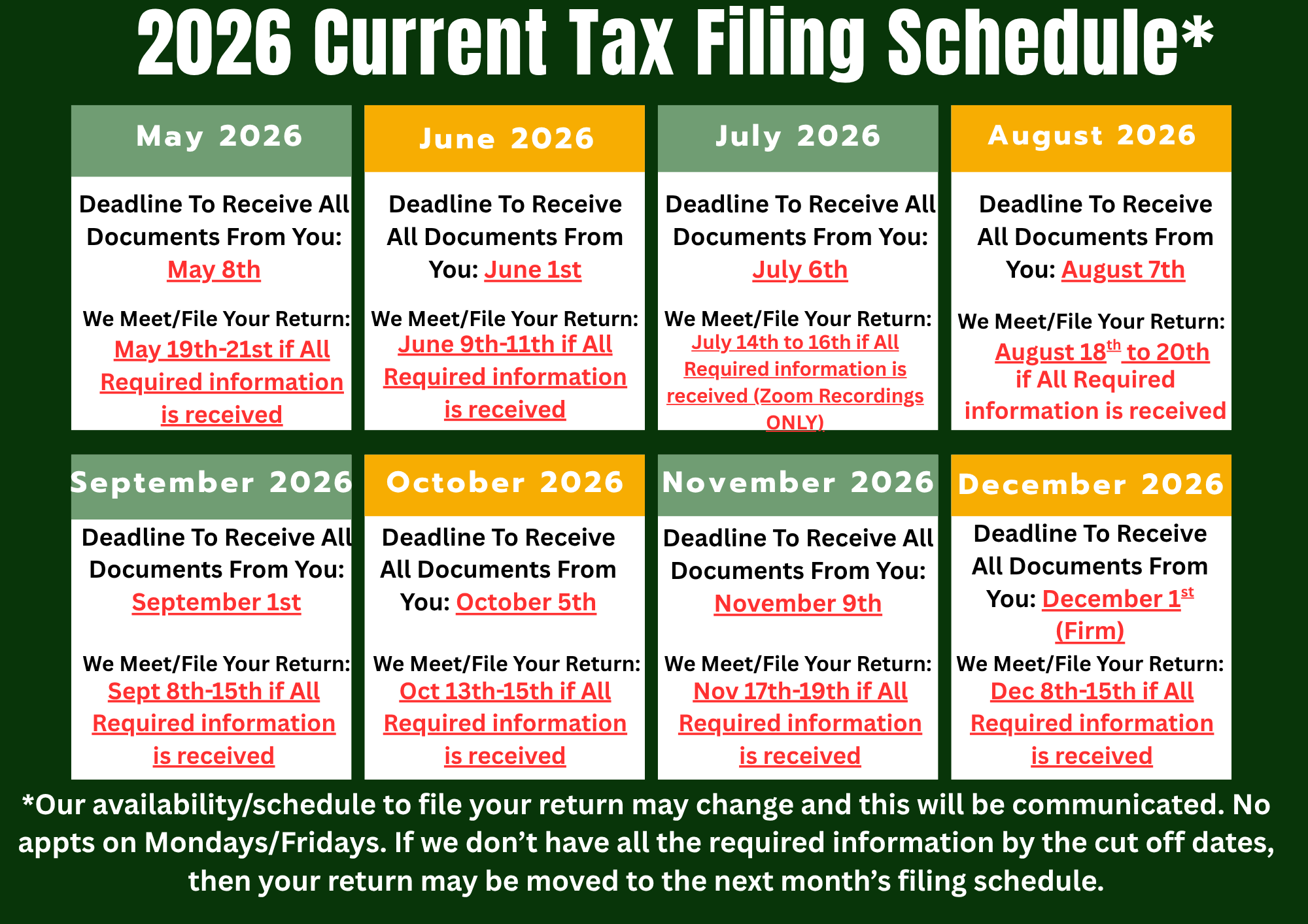 Check out our calendar for our May to December 2026 Tax Filing Schedule