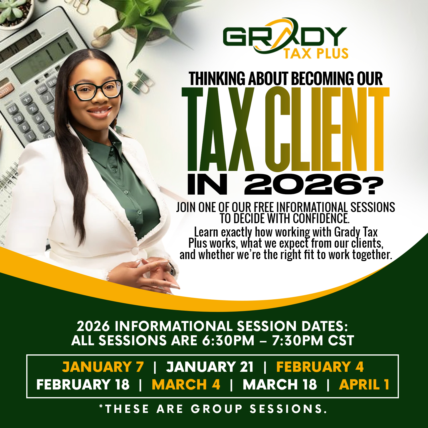 Welcome to Grady Tax Plus. We can't wait to serve you for this 2026 Tax Filing Season.
